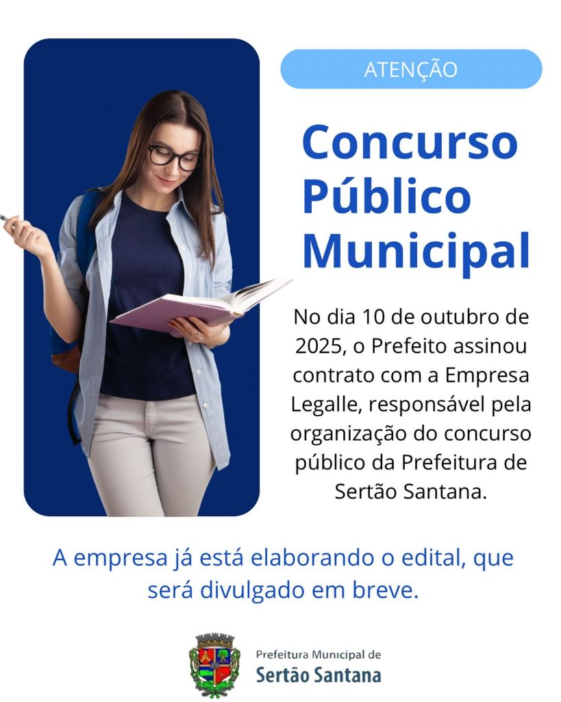 A Prefeitura Municipal de Sertão Santana anunciou, no dia 10 de outubro de 2025, a assinatura do contrato com a empresa Legalle Concursos, que será responsável pela organização do próximo concurso público municipal.