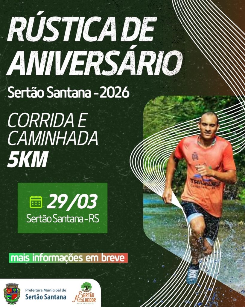 Sertão Santana se prepara para mais uma edição da tradicional Rústica de Aniversário, que integra o calendário comemorativo do município. O evento, previsto para o dia 29 de março de 2026, contará com provas de corrida e caminhada de 5km, reunindo atletas, moradores e visitantes em uma manhã de integração e incentivo à saúde.