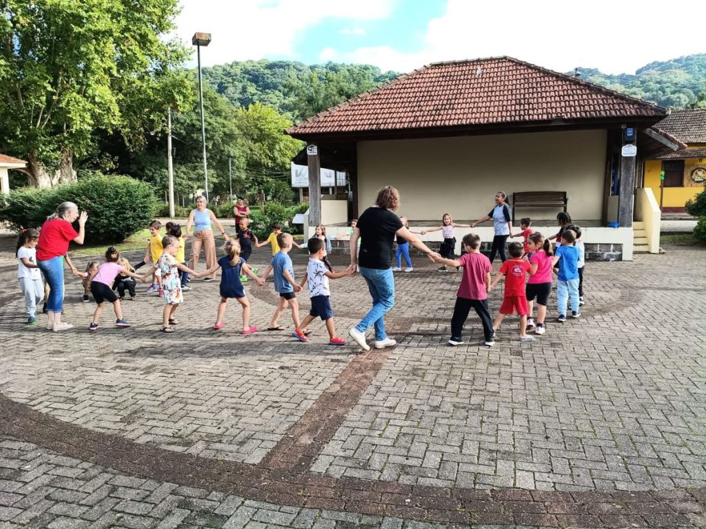 O momento contou com aprendizado e brincadeiras organizadas pela equipe escolar, tornando a experiência ainda mais especial.