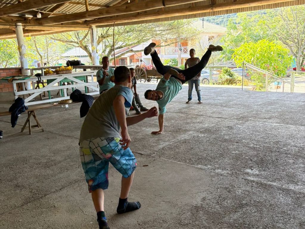 Agradecemos à Secretaria da Saúde pela doação das camisetas, assim como à ajuda via PSE com a nossa parceira Raquel (enfermeira), e à Assistência Social pelo apoio na compra de materiais e cedência do professor de capoeira.