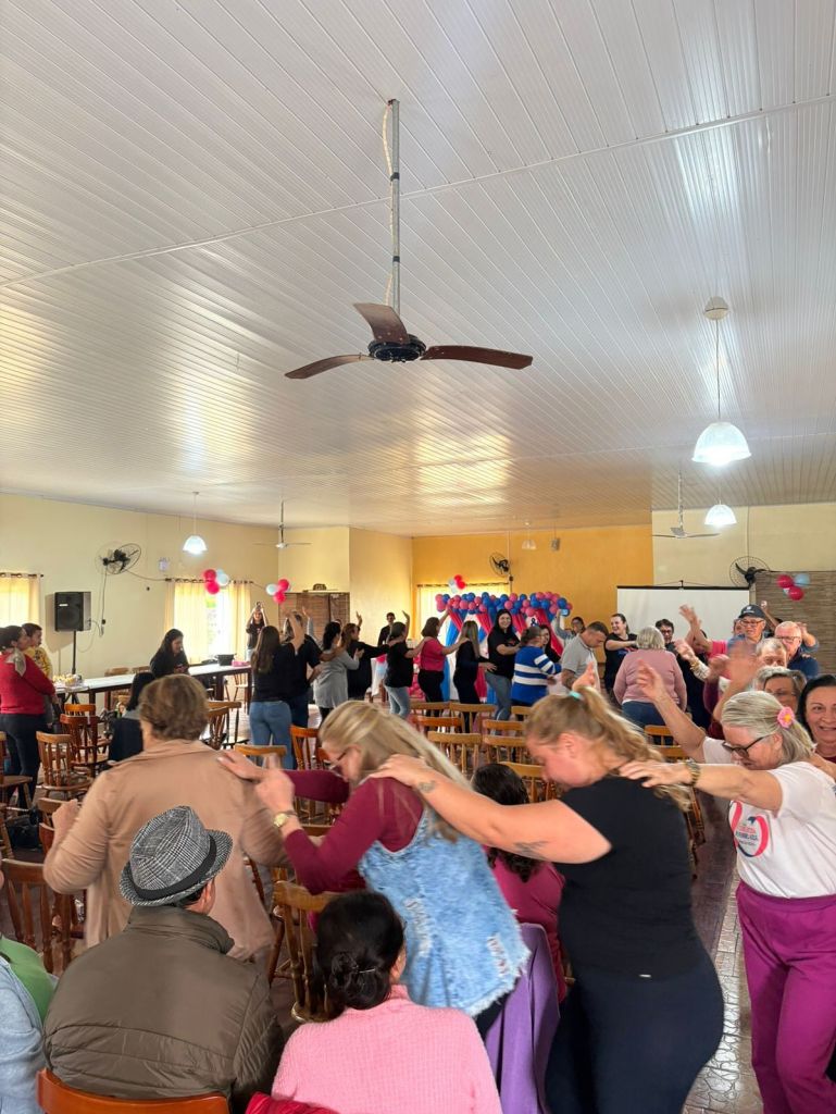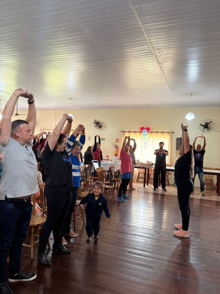 As instrutoras Josi e Kelen animaram o público com exercícios físicos, promovendo movimento e alegria!
