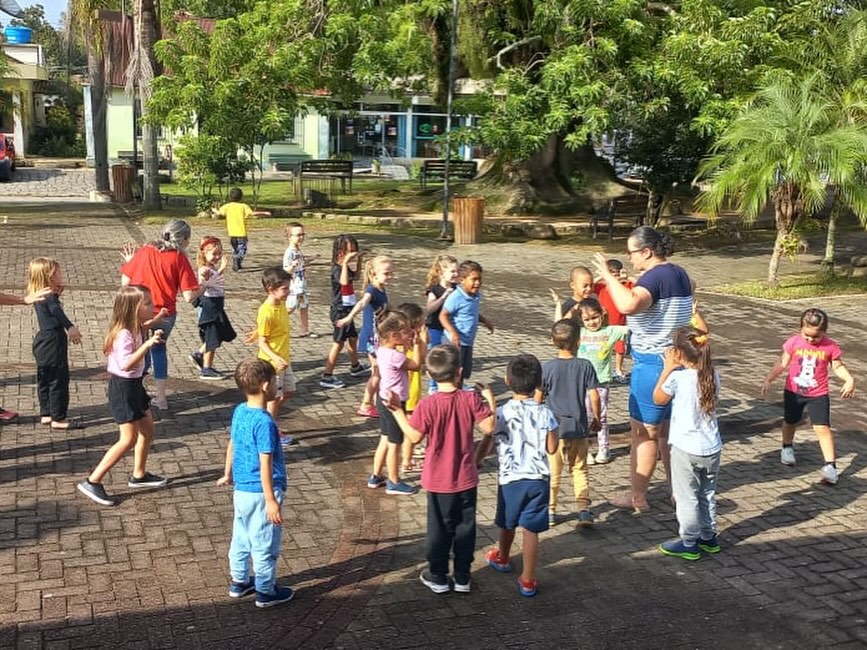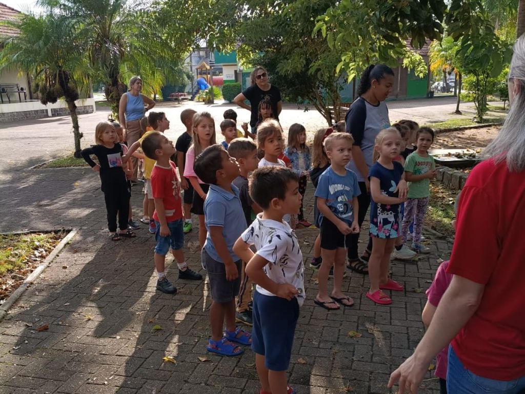 O momento contou com aprendizado e brincadeiras organizadas pela equipe escolar, tornando a experiência ainda mais especial.
